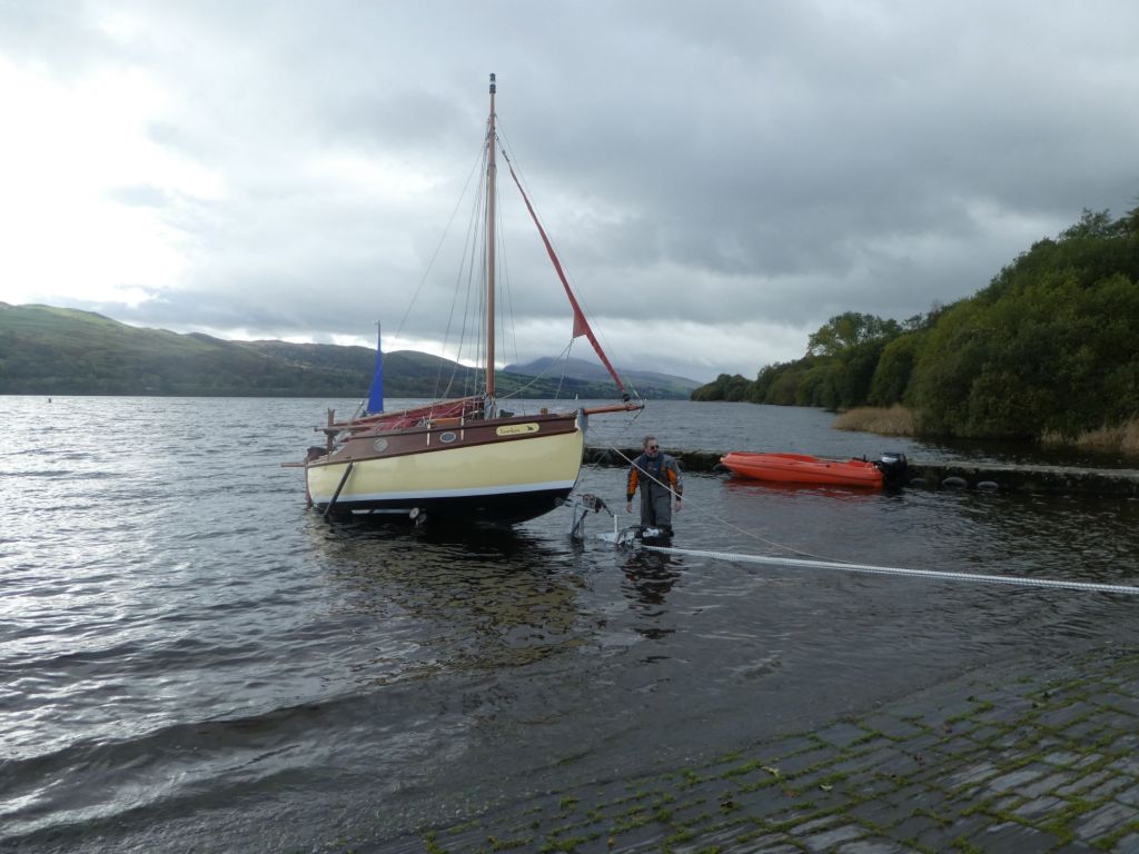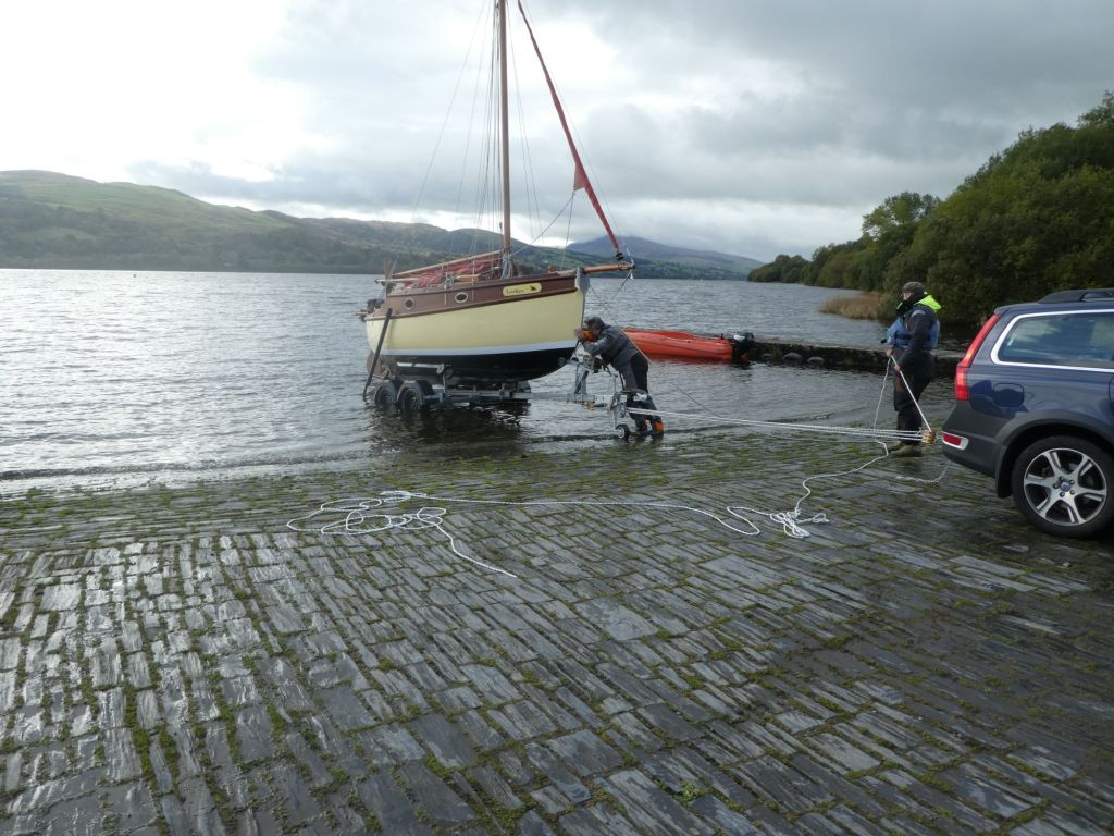 The location was a little unlucky as it turned out. Water in the lake was pretty low, and the public slipway had a very gentle gradient. After testing the depths I found that I could get the boat into for get off water to float it off the trailer but only by going out about twenty five feet. There was also a small step at the end of the ramp which although we tried to avoid it, we ended up rolling over on the retrieve.