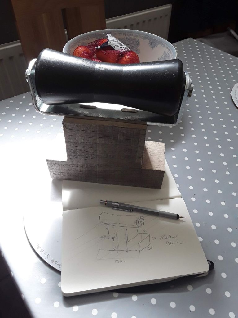 The following weekend I added three more rollers with the aid of some shaped wooden blocks. Also made a start with the vee guide which should allow accurate alignment onto the trailer.