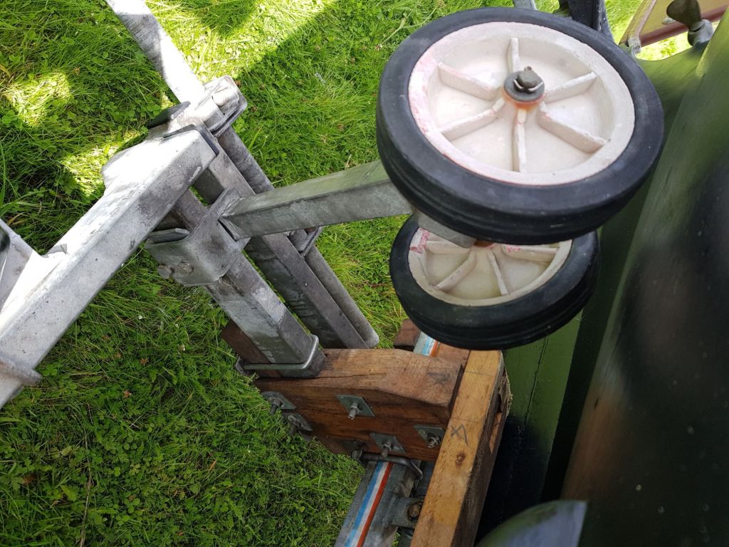 The rollers are designed to wobble in order to exert equal pressure between each pair of wheels. On this occasion the bracket holding the wheels on the aft starboard was pushed over so the side of the wheel came into contact with the hull. Some damage to the hull was sustained while winching in. but thankfully only superficial, a scratch through the paintwork going far enough to expose wood. The wheel spindle bent and so too did the stantion. Unfortunately this also means no road transport until it is fixed so I was forced to leave the boat at Glasdon SC and return the following week to make repairs.