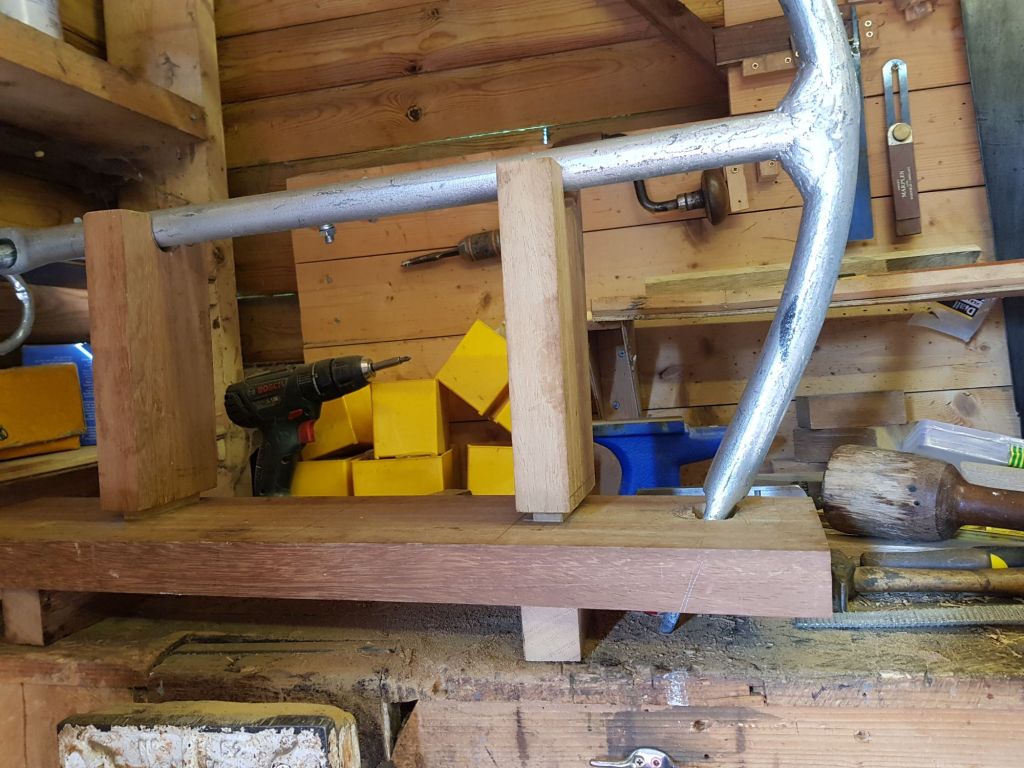 To support the bearers I’m joining them to a horizontal peice with mortice and tenon joints which will be strong enough to hold the bearers upright and prevent the anchor from moving around.