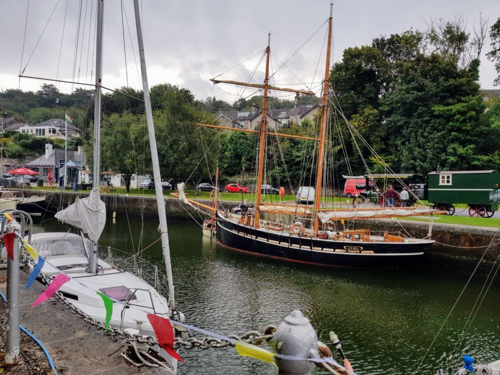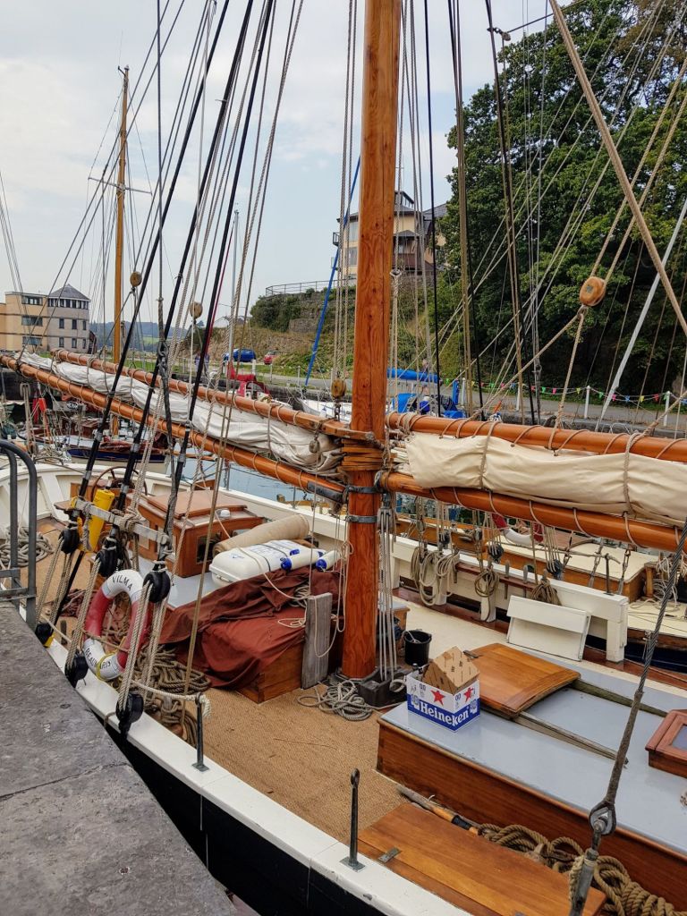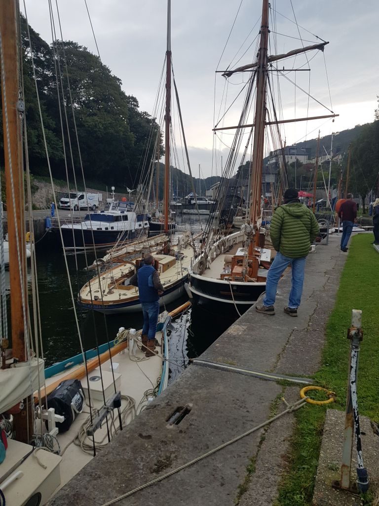 Tarka joined a group gaff rigged traditional wooden boats gathered in the inner dock in Port Dinorwick this weekend. A short break at an OGA organised event including lift in and out, mooring, music, food, drinks, a steam engine and live band entertainment.