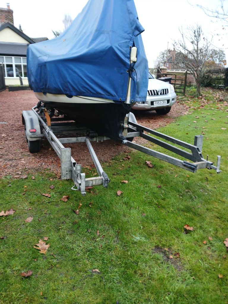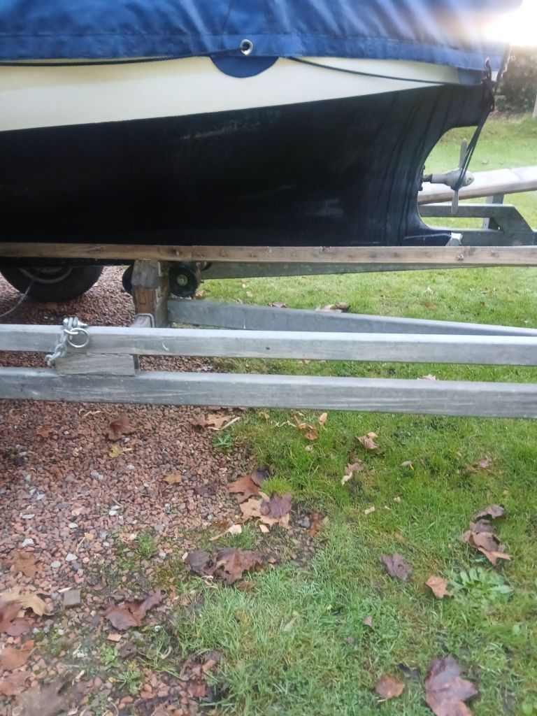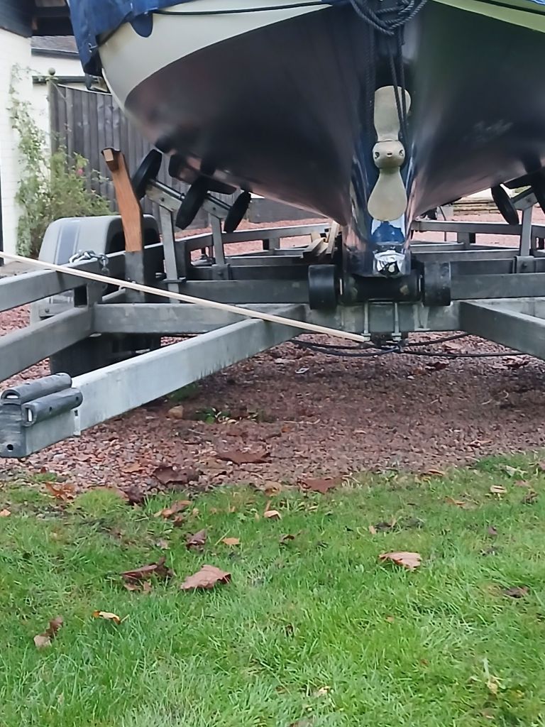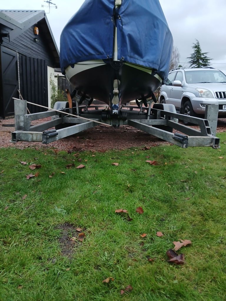 Starting the job of trailer mods. Looking at the back of the trailer you can still see the mud it picked up from Dove Point a few weeks ago. This happened when the trailer went down the steepest part of the slip but hit the flat bottom of the channel before Tarka was full able to float off the trailer.