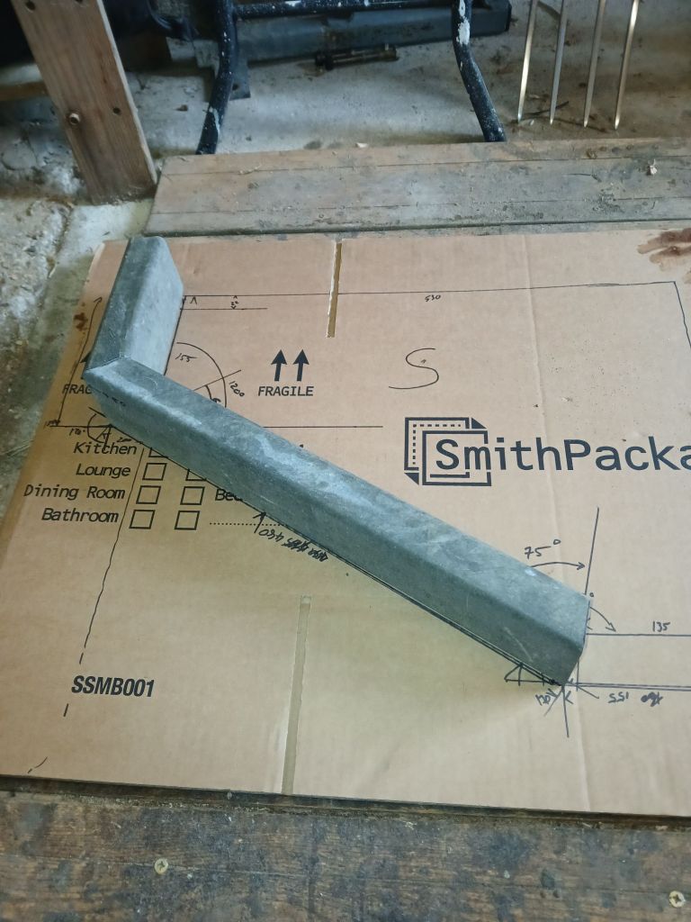 First side done. The vee support in place it is starting to look more complete and purposeful. I can now start measuring up for the intended woodwork that will become the finished vee guide.