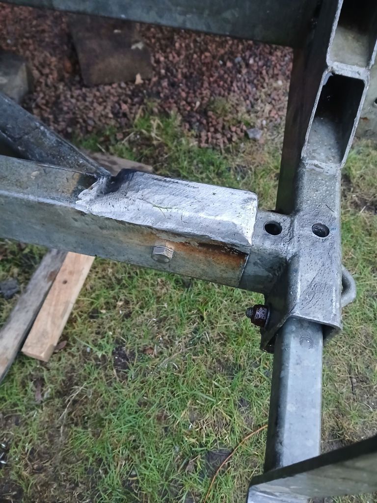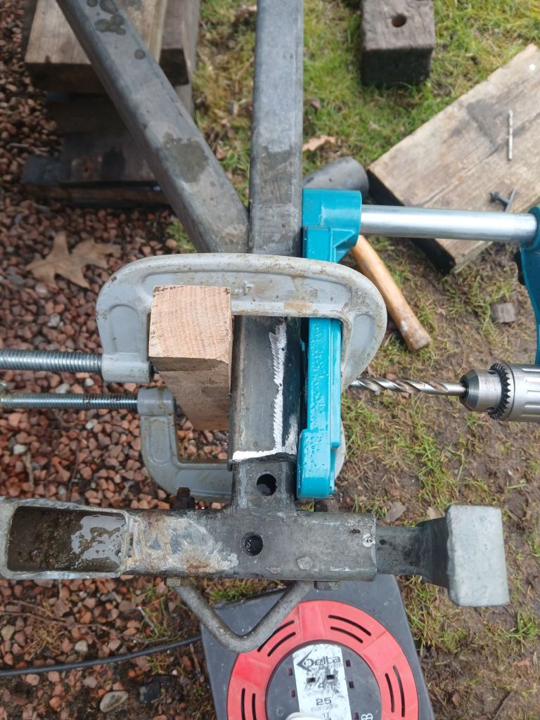 The weathers been bad this last few weeks, freezing temperatures rain and snow put a stop to work outside. But today we have a warm day and little rain so pressing on with the aft support. It’s a removable section so need to drill some holes to fit bolts. Taking this opportunity to finish the welding and tidy up a bit.