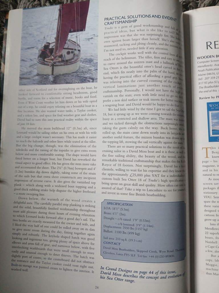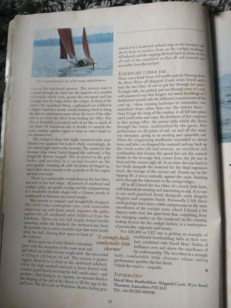 This time from Boatman magazine from Aug 1996 this Sea Otter is with the standard smaller cockpit and therefore with side decks running along the cockpit roof.