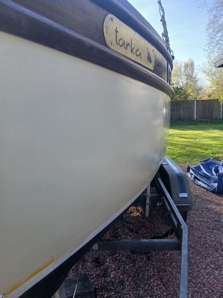 What with the weather being ideal this week I had expected to be finished painting by now but stuff gets in the way and with one thing and another I’ve ran out of time. I’ve taken my time to prepare the surfaces at least and given the bottom a sand and inspection, the boot line a sanding, and the sides a sanding, filling small areas where the paints been chipped or dented, and subsequently fine sanding to remove all the previous peaks to flatten the surface once more ready for a top coat.