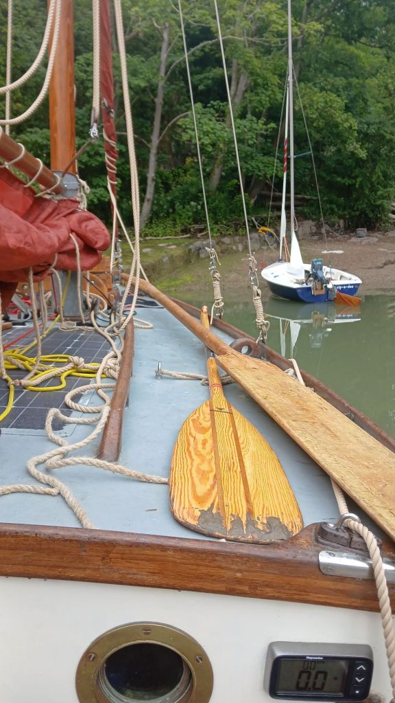 Also a first outing for the new fisherman’s anchor that I deployed off the stern while the bow was tied off to a chain on the quarry’s edge to make anforenand aft mooring.